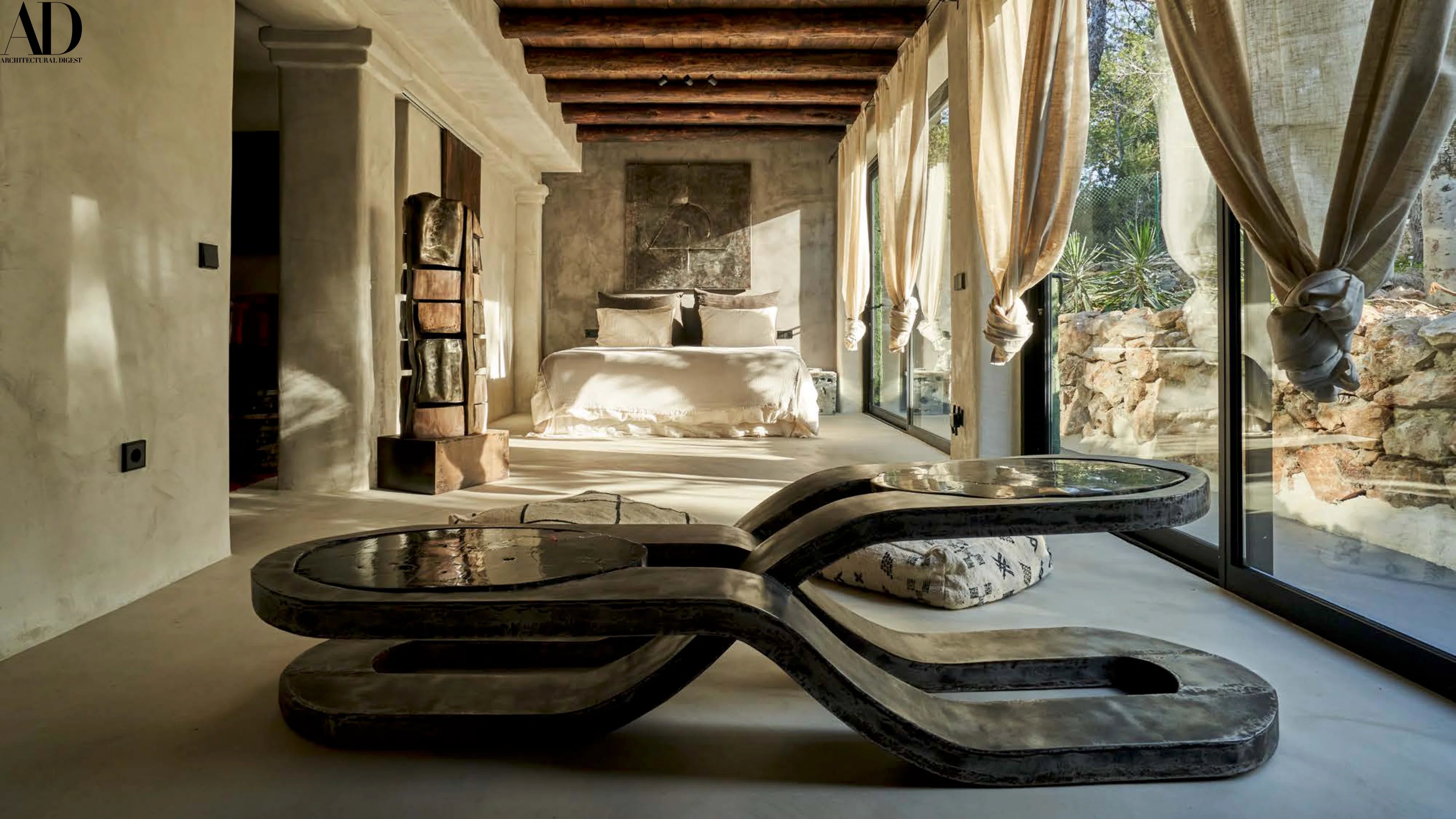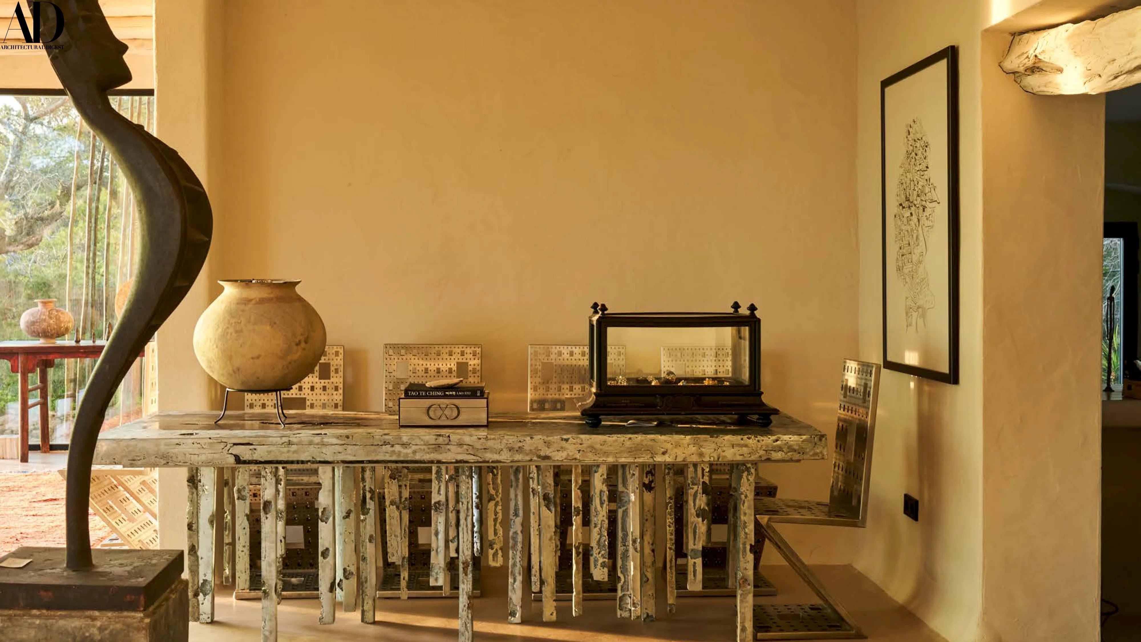 The Ibiza Temple by John Brevard is not a conventional house, but a living gallery. Architecture, furniture, and jewelry coexist as part of a single artistic vision, each piece carefully integrated into the space. The building itself becomes a sculptural framework where design and art are experienced as one.